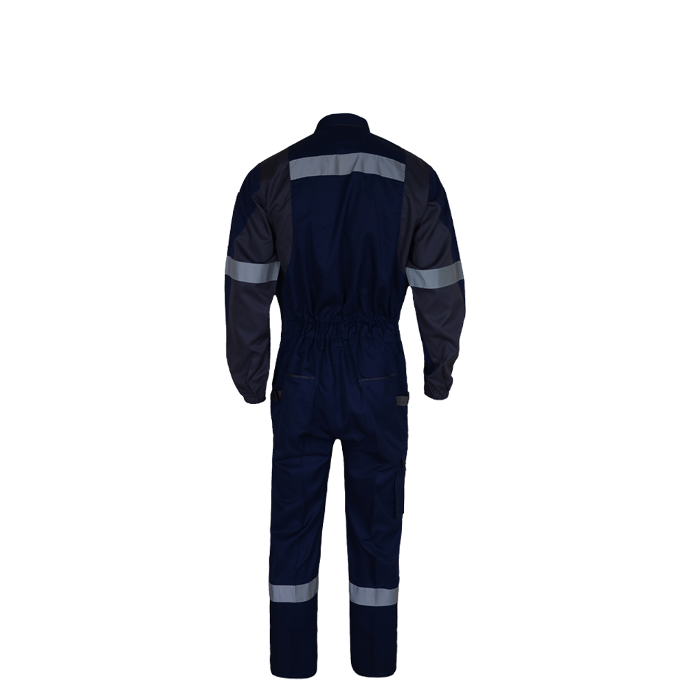 از نظر ویژگی این محصول از پارچه فلامنت کجراه پنبه ای تولید شده که علاوه بر سبکی و لطافت، در برابر شست و شوهای مکرر، تغییر رنگ و چروک مقاومت بسیار بالایی دارد. طراحی یکسره آن باعث جلوگیری از نفوذ گرد و غبار به لباس زیرین می شود و در عین حال آزادی حرکت بسیار خوبی ارائه می دهد. وجود کش در قسمت کمر باعث می شود لباس روی بدن کامل قرار گیرد و کاربر هنگام انجام فعالیت های سنگین احساس راحتی بیشتری داشته باشد. وجود جیب های متعدد در بخش سینه، پهلو و پشت، دسترسی آسان به وسایل شخصی یا ابزار کوچک را فراهم می کند. نوارهای شبرنگ پهن روی سینه، بازو و پاها علاوه بر زیبایی موجب افزایش ایمنی می گردد. برش استاندارد و دوخت صنعتی سه سوزنه لباس، ماندگاری آن را به طور قابل توجهی افزایش داده است.