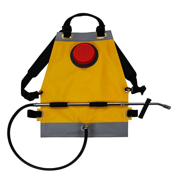 از نظر ویژگی این محصول از جنس پارچه PVC ضد حرارت و ضد آب ساخته شده که در برابر دمای بالا، شعله و تماس با مواد شیمیایی مقاومت بالایی دارد. طراحی داخلی آن معمولا شامل مخزن مخصوص آب یا فوم اطفایی با ظرفیت مناسب (معمولا 20 تا 25 لیتر) است که با پمپ دستی یا فشاری، امکان پاشش مستقیم مواد خاموش کننده روی شعله را فراهم می کند. شیلنگ خروجی با نازل قابل تنظیم از متریال مقاوم در برابر حرارت ساخته شده تا در شرایط دمای بالا عملکرد خوبی داشته باشد. بخش پشتی کوله، دارای فوم های تهویه دار است تا هنگام استفاده طولانی مدت، از فشار روی کمر و تعریق جلوگیری شود.